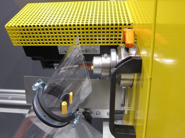 In die gewünschte Länge wird das Profil durch einen Rotationscutter gebracht, der das Profil spanlos trennt.